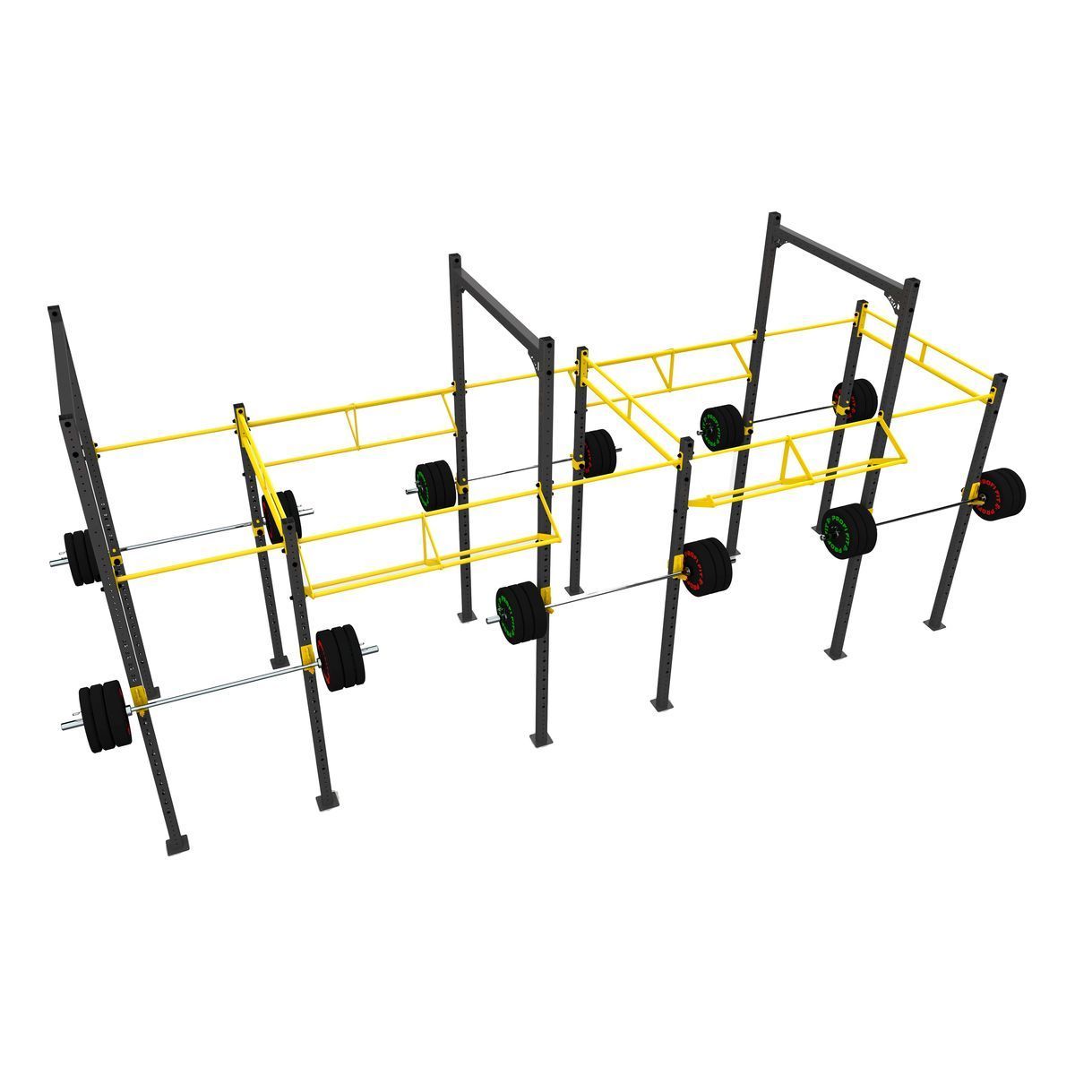 А0330 Функциональная рама 6900-1800.Функциональная рама для кроссфита – неотъемлемый атрибут любого crossfit-зала, универсальное решение необходимое для проведения комплексных тренировок и выполнения силовых упражнений.Основные элементы рамы выполнены из профильной трубы 80*80*3 мм,трубы d32 мм и листов металла 8 и 10 мм. Состав:Стойка перфорированная 80х80, ZSO-2680-6 шт Стойка перфорированная 80х80, ZSO-3680-6 шт Балка перфорированная УСИЛЕННАЯ 80х80, ZSO-1800- 3 шт Перекладина двойная d32, ZSO-1800 — 3 шт Перекладина одинарная d32, ZSO-1100- 6 шт Перекладина треугольная d32/32/32, ZSO-1800- 4 шт Крюки для штанги, ZSO, (пара)-6 шт
