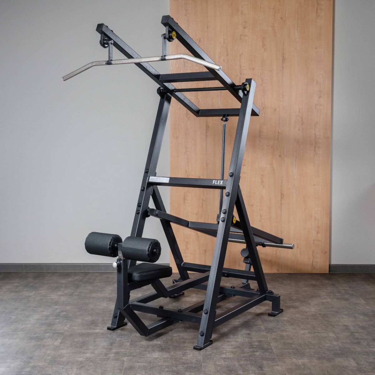 Подвижный рычаг снабжён встроенным противовесом, компенсирующим начальную массу конструкции и обеспечивающим лёгкий старт без дополнительных дисков – это повышает комфорт и снижает нагрузку на плечевые суставы в начале упражнения.