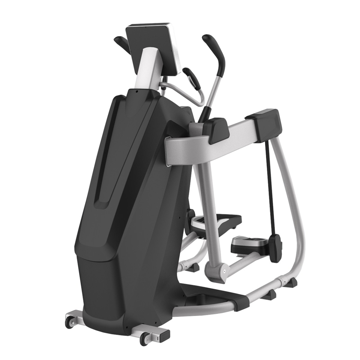 Адаптивный тренажер сочетает в себе эллиптический тренажер с заданной траекторией шага, беговую дорожку без ударной нагрузки на суставы и степпер благодаря регулировке шага и угла наклона от 0% до 15%.