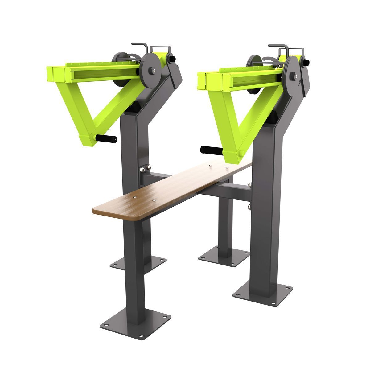 Металлические элементы покрыты цинкосодержащим грунтом, формирующим антикоррозийный слой в результате химической реакции компонентов грунта с металлом, и порошковой краской с шагреневой фактурой, запечённой в печи полимеризации. Шагреневое покрытие повышает устойчивость поверхности к механическим повреждениям и маскирует следы эксплуатации.