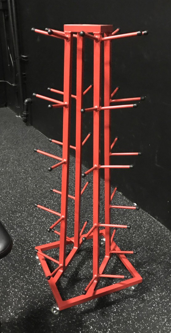 Стойка вмещает 20 набивных мячей. Для удобства использования и транспортировки стойки добавлены 4 колесика, благодаря которым стойка без труда перемещается на любое удобное место.