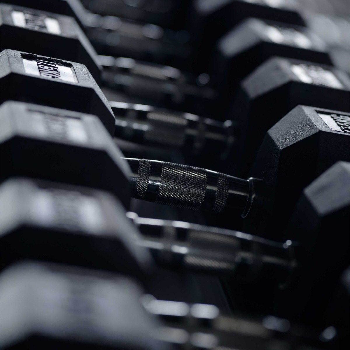 Шестиугольные грузы гантели, обеспечивающие устойчивое положение на любой поверхности, изготовлены из цельного металла.