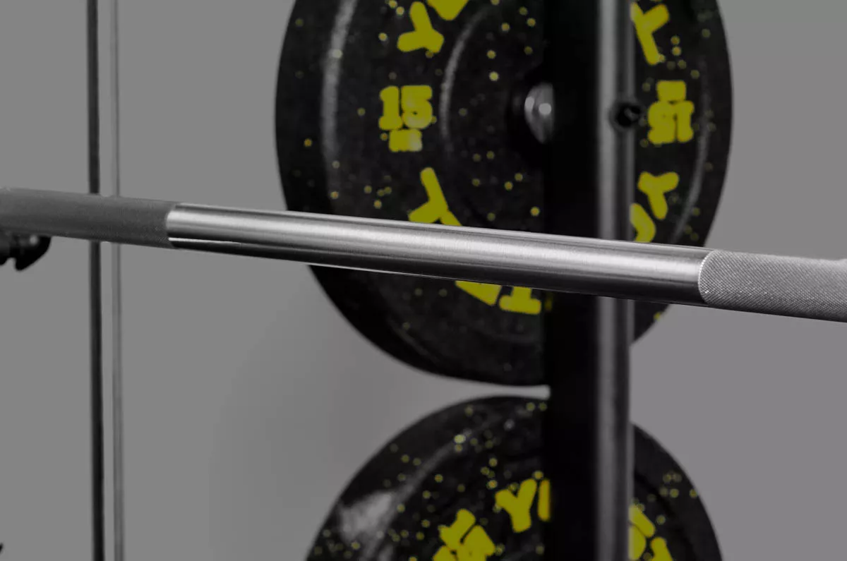 Снаряд имеет вес 20кг. Рукоять грифа покрыта хромом и изготовлена из специальной стали, обладающей высокой прочностью на разрыв в 250k PSI. Гриф имеет отличную упругость, а гибридная насечка обеспечит надежный хват. Нанесены метки IWF и IPL. Внутри втулок десять игольчатых подшипников, которые гарантируют плавное вращать диски даже при самых высоких нагрузках.