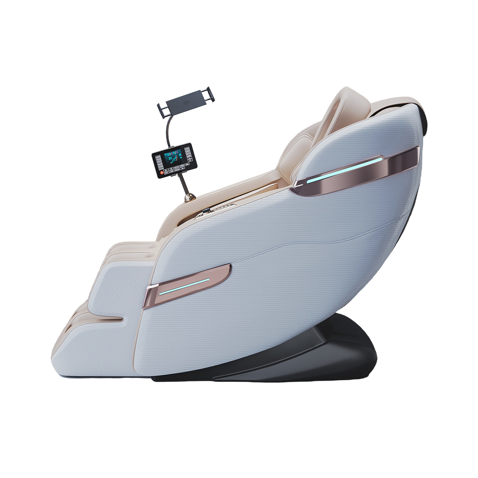 Кресло предлагает пять автоматических программ массажа для разных потребностей: комфорт, сон, расслабление, обновление, восстановление. Воздушно-компрессионный массаж реализуется через 20 воздушных подушек с регулировкой по зонам и интенсивности. Функция прогрева поясницы и икр усиливает эффективность массажа, способствуя лучшему расслаблению мышц и кровообращению.