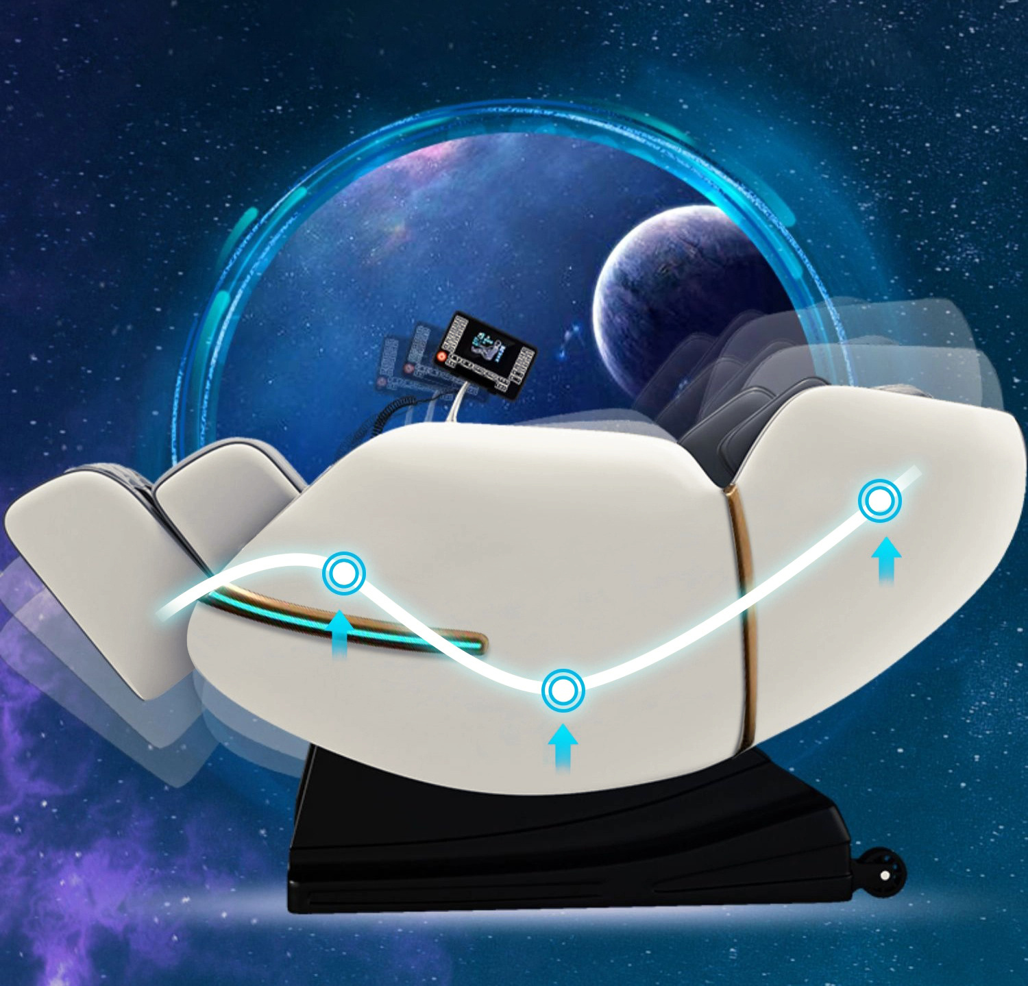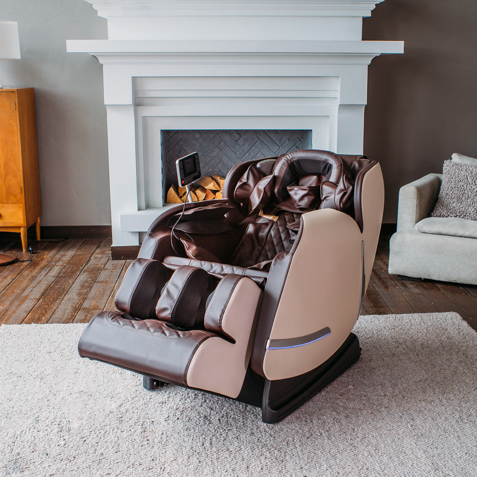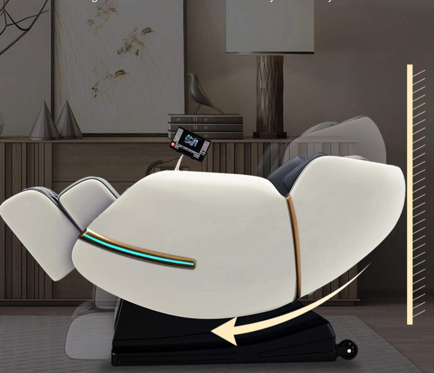 Инновационная система Smart-Slide позволяет размещать кресло на расстоянии 25 см от стены. Регулируемая секция для ног закрытого типа выдвигается на 10 см, обеспечивая оптимальное положение для массажа ног. Встроенные Bluetooth-колонки и прогрев поясницы и икр дополняют комфорт во время сеанса.