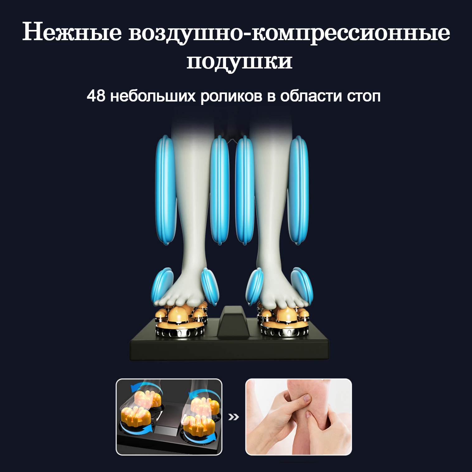 Количество роликов в массаже ног: 48 роликов на стопу (4 группы)