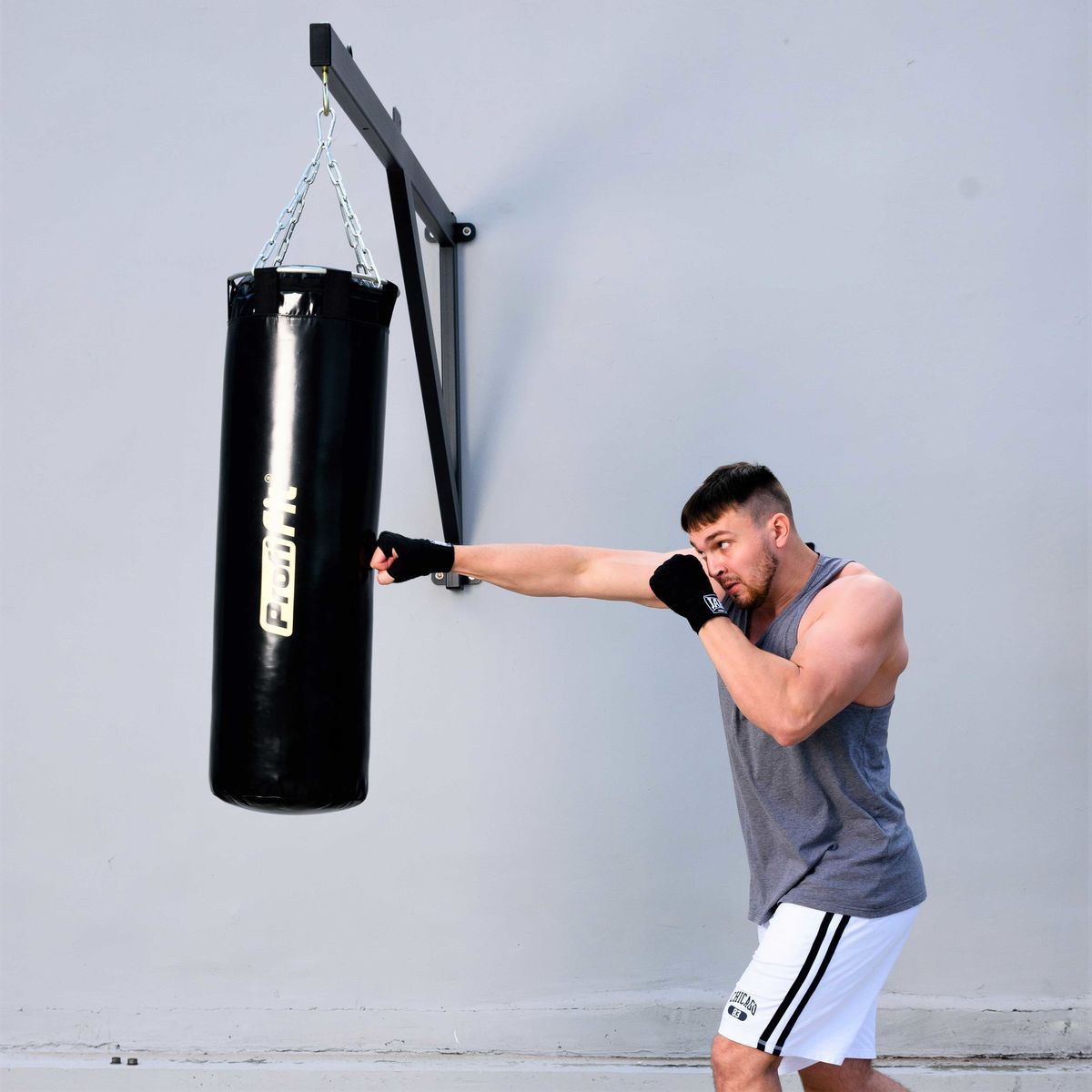 Мешок превосходно поглощает удары и что важно, имеет небольшую амплитуду раскачивания.