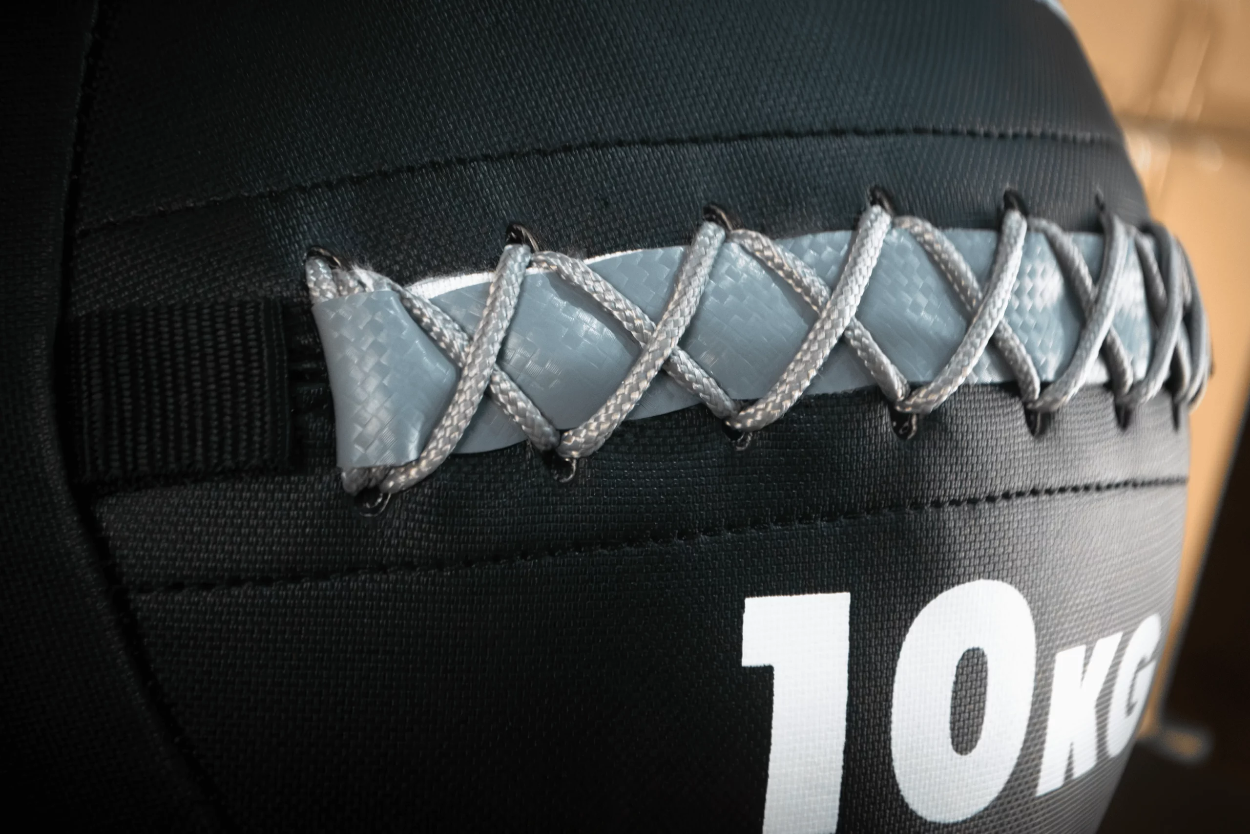 Медбол представляет собой утяжеленный мяч, диаметром 355мм и весом 10кг. Оболочка мяча выполнена из износостойкого ПВХ, которое обеспечивает оптимальное сцепления с ладонями занимающихся и предотвращает выскальзывание из рук, даже если вы вспотели. Для простоты ориентации каждый снаряд имеет цифровое обозначение веса и цветную вставку. Каждый шов прошивается нейлоновой нитью, что обеспечивает повышенную надёжность. Уникальность мячей в том, что мы используем внутри систему «скорлупы». Под оболочкой из ПВХ находится мягкий слой из вспененного полиуретана высокой плотности, который служит для предотвращения смещения центра тяжести, это происходит за счет концентрации тяжелых частиц набивки в самом центре ядра «скорлупы» мяча.
