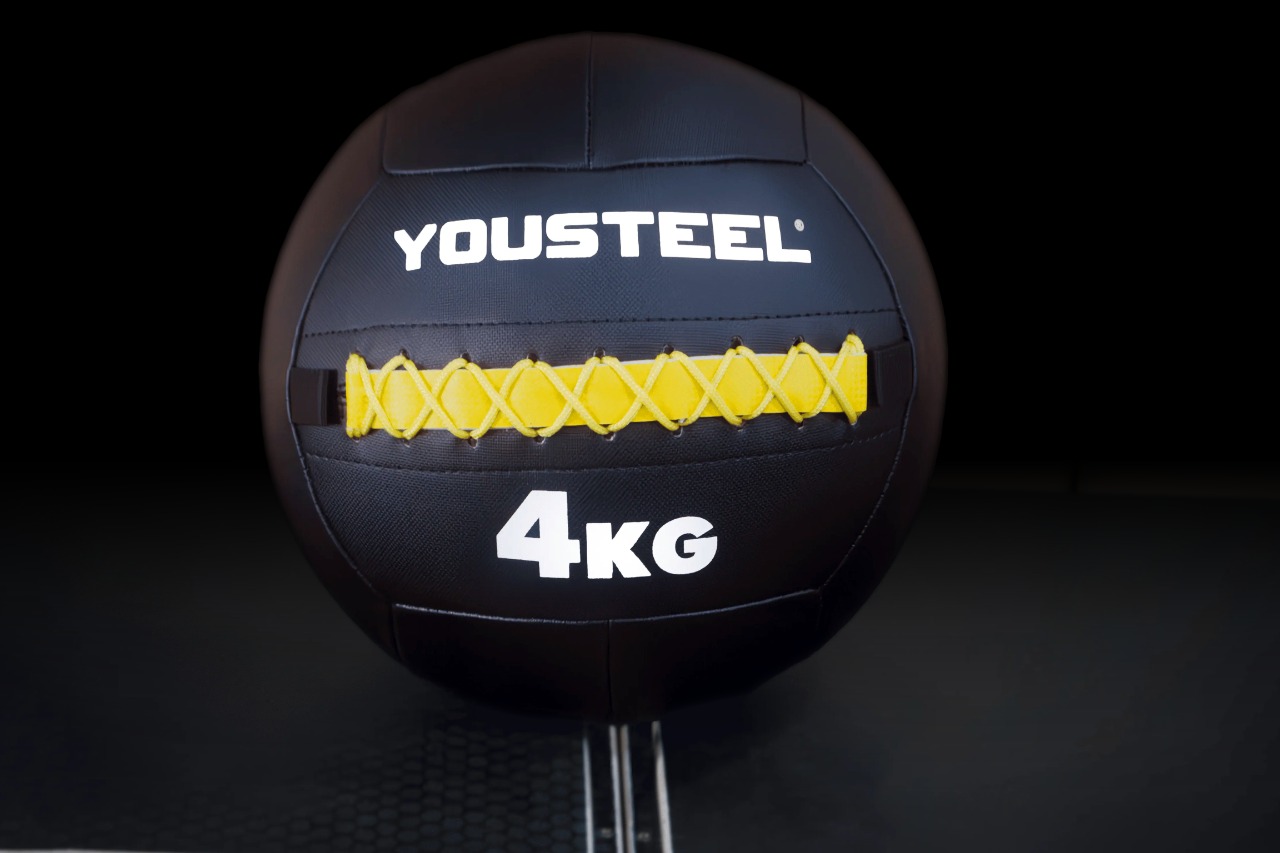 Медбол представляет собой утяжеленный мяч, диаметром 355мм и весом 4кг. Оболочка мяча выполнена из износостойкого ПВХ, которое обеспечивает оптимальное сцепления с ладонями занимающихся и предотвращает выскальзывание из рук, даже если вы вспотели. Для простоты ориентации каждый снаряд имеет цифровое обозначение веса и цветную вставку. Каждый шов прошивается нейлоновой нитью, что обеспечивает повышенную надёжность. Уникальность мячей в том, что мы используем внутри систему «скорлупы». Под оболочкой из ПВХ находится мягкий слой из вспененного полиуретана высокой плотности, который служит для предотвращения смещения центра тяжести, это происходит за счет концентрации тяжелых частиц набивки в самом центре ядра «скорлупы» мяча.