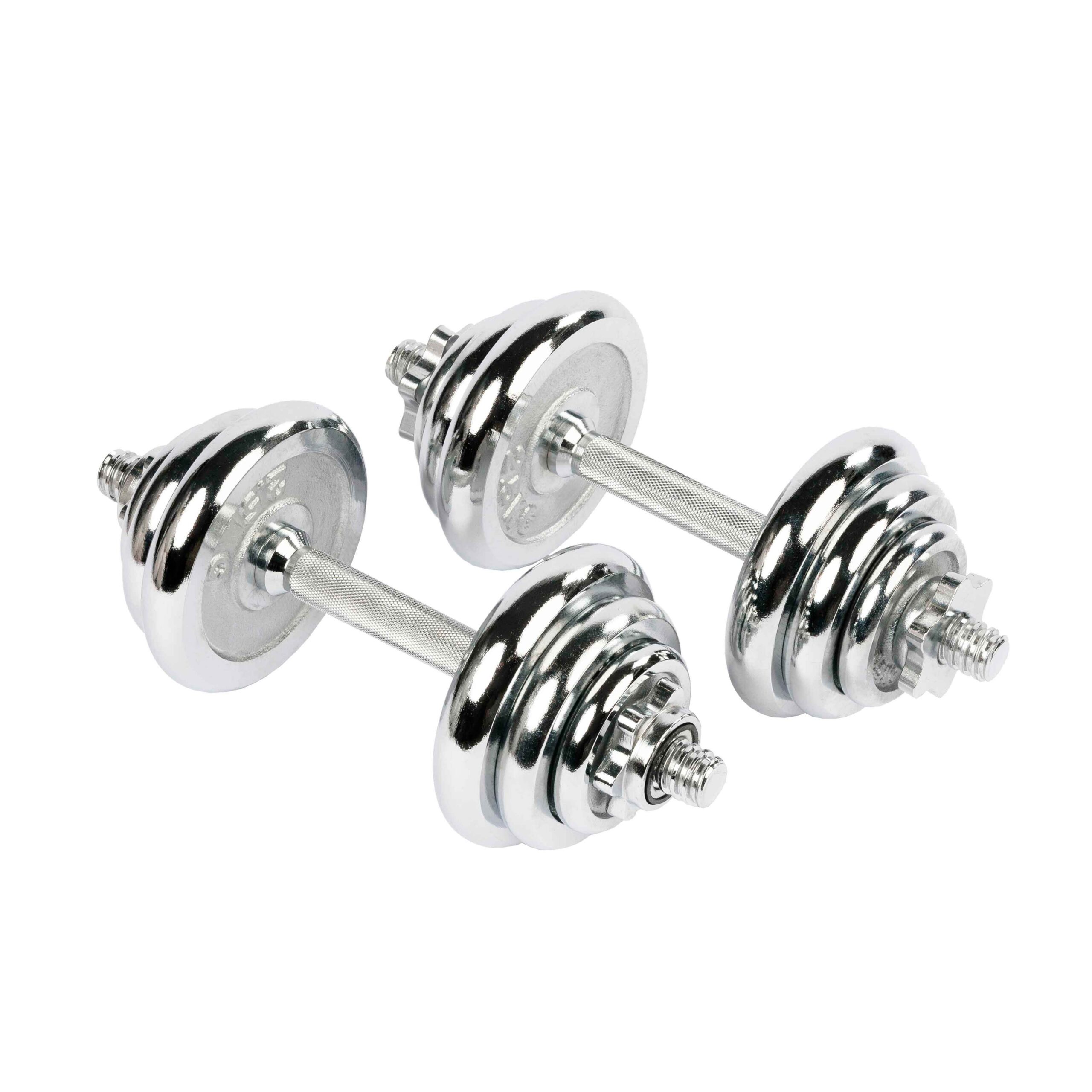 Весовые диски выполнены из металла с зеркальным хромовым покрытием.