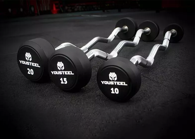 Набор фиксированных EZ полиуретановых штанг весом от 10 до 30 килограммов с шагом в 5 килограммов отлично подойдет для оснащения зоны силовых и функциональных тренировок.