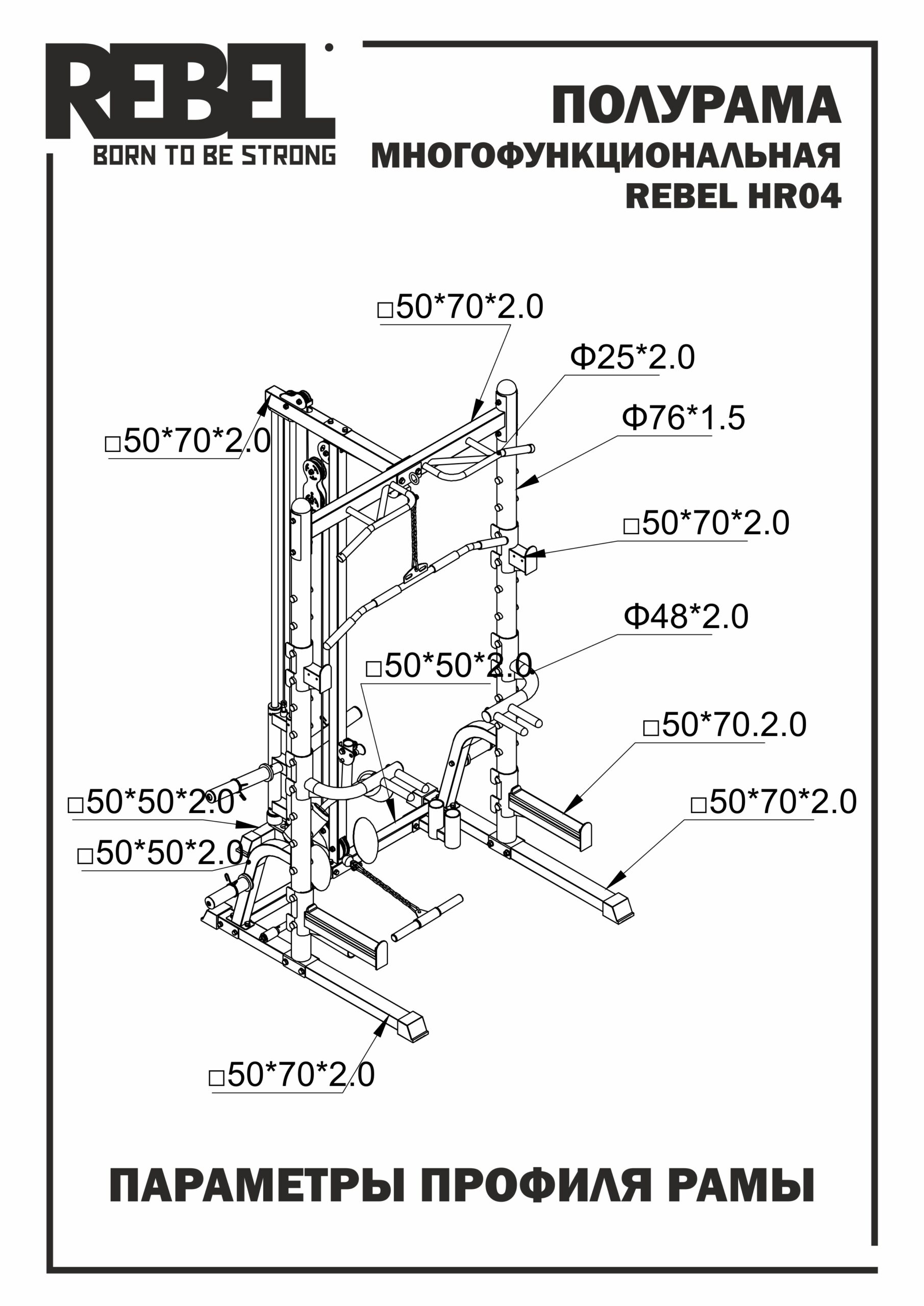 Также полурама REBEL HR04 имеет встроенный турник и съемные регулируемые по высоте брусья, позволяющие выполнять упражнения на тренировку мышц брюшного пресса.