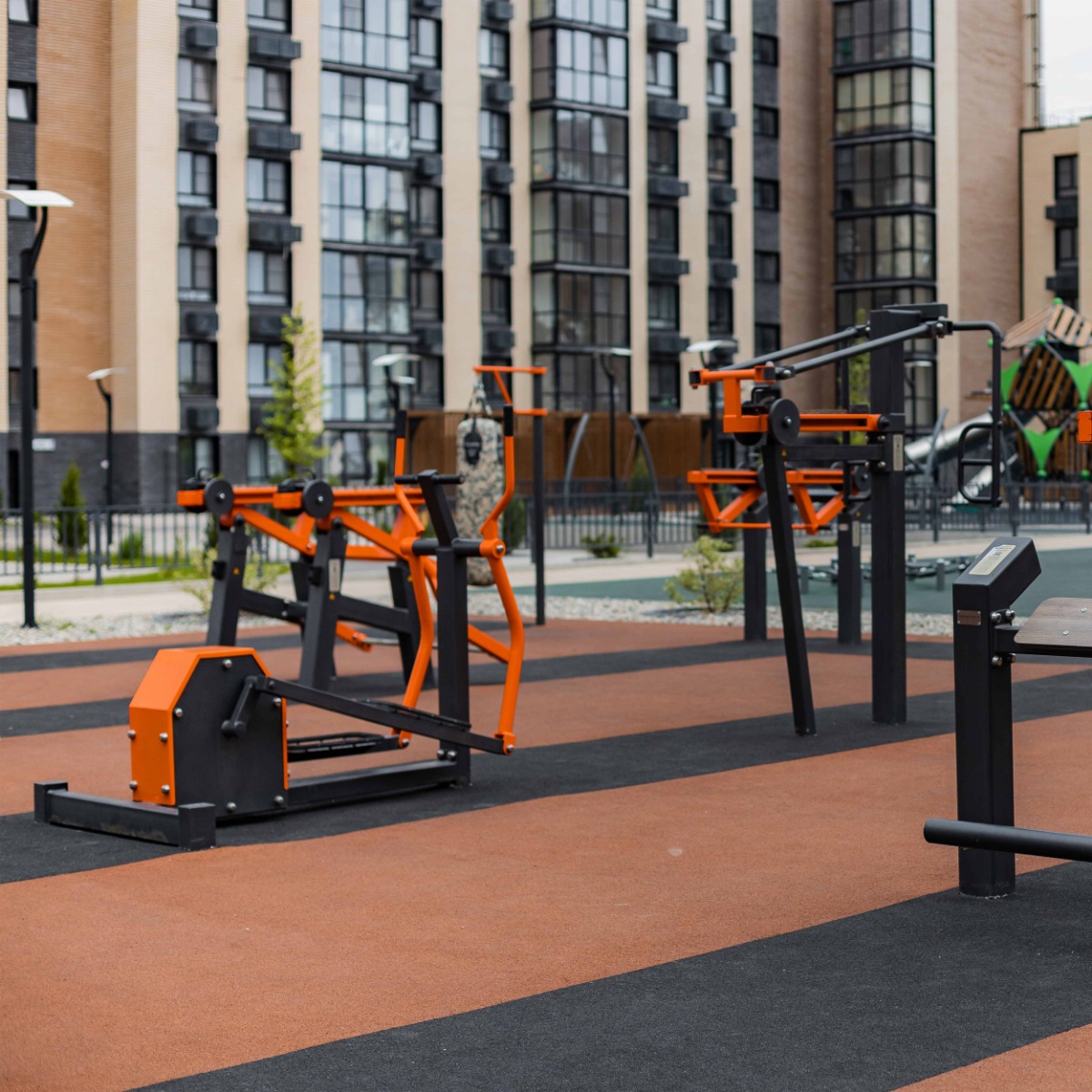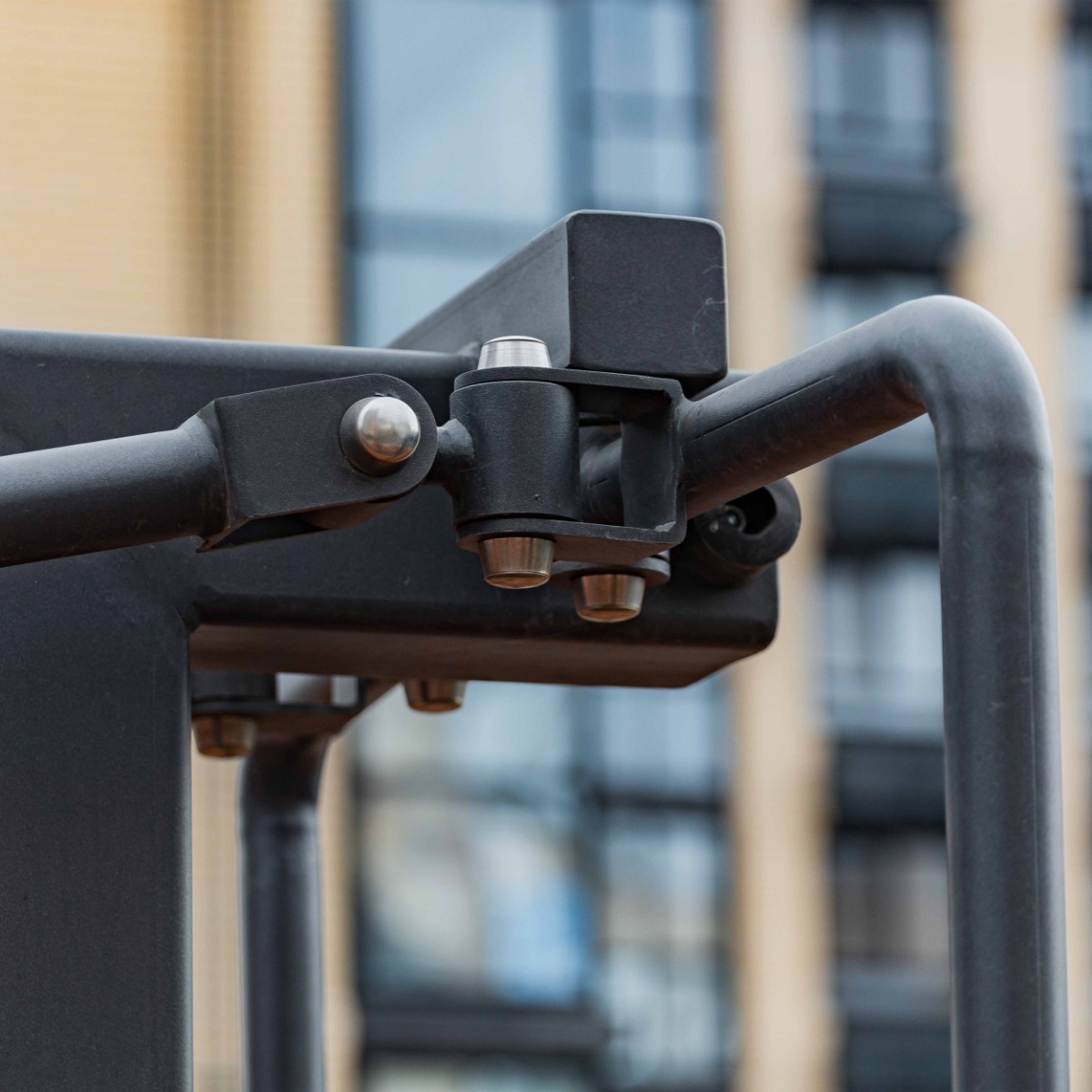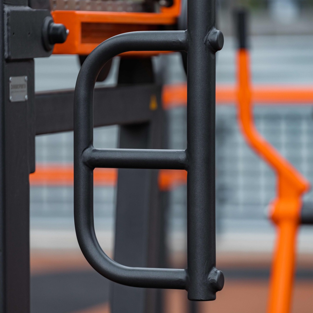 Надёжность и прочность разъёмных соединений конструктивных элементов тренажёра обеспечиваются за счёт использования высококачественного оцинкованного крепежа, выступающие части которого закрыты металлическими защитными колпачками.