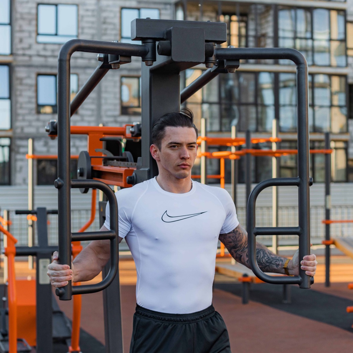 P-1802 Уличный тренажер Сведение рук стоя с переменной нагрузкой ZAVODSPORTA