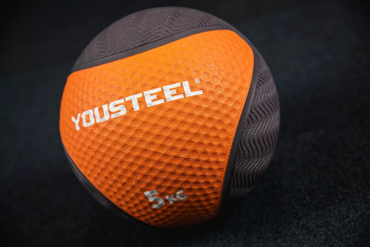 Тренировочный мяч имеет жесткую оболочку и выполнен из каучука. Поверхность мяча имеет специальный протекторный рисунок, который позволяет комфортно удерживать мяч даже если ваши ладони сильно вспотели. Для простоты ориентации каждый снаряд имеет цифровое обозначение веса и цветную вставку. Занимающимся следует быть аккуратными, т.к. мяч имеет высокую степень отскока при ударах о поверхности.