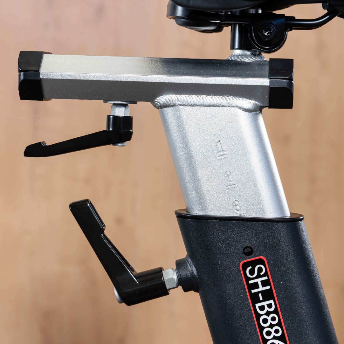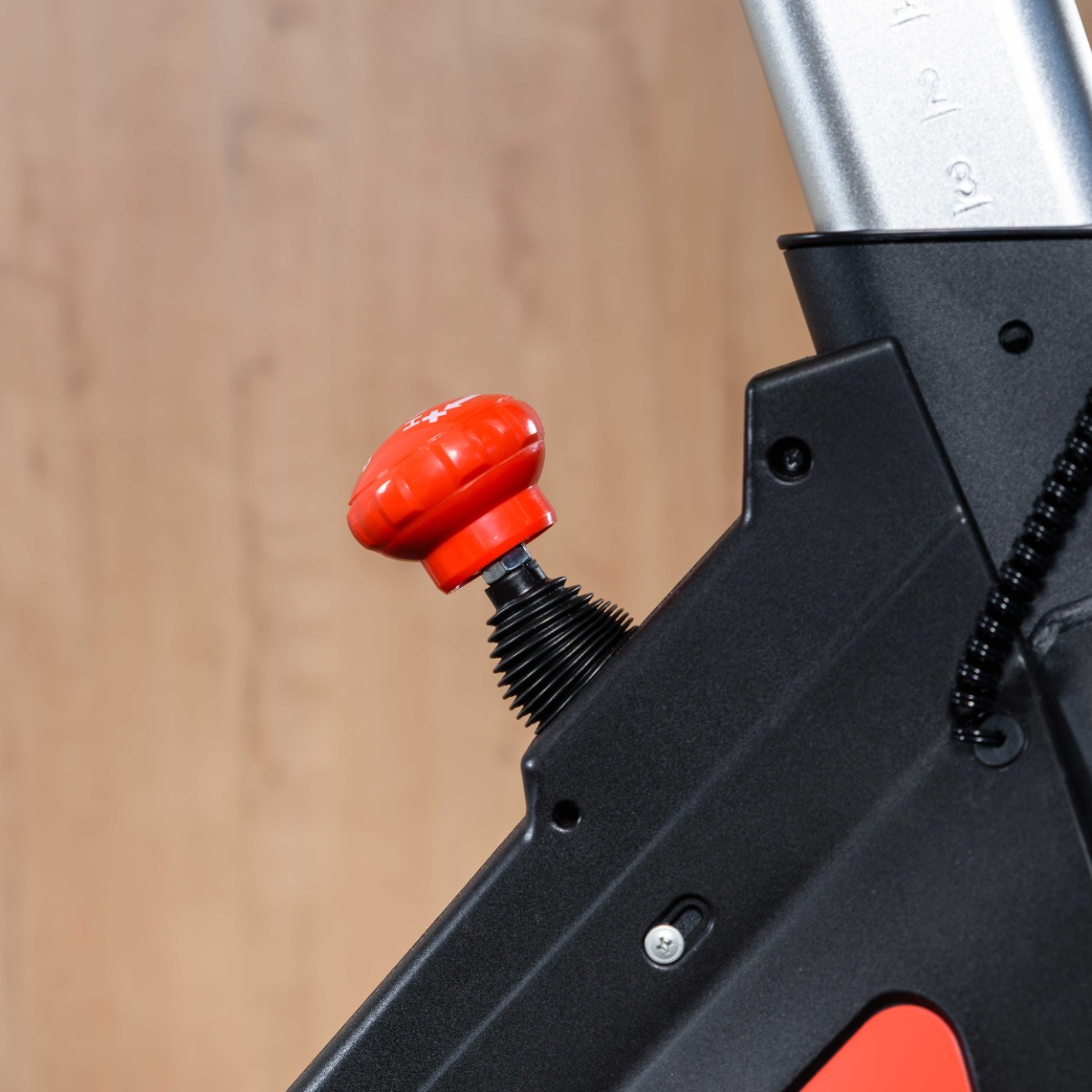 Рукоятка для переключения скорости находится на раме тренажера. Переключается интуитивно. При надавливании на рукоятку сверху срабатывает ручной тормоз.