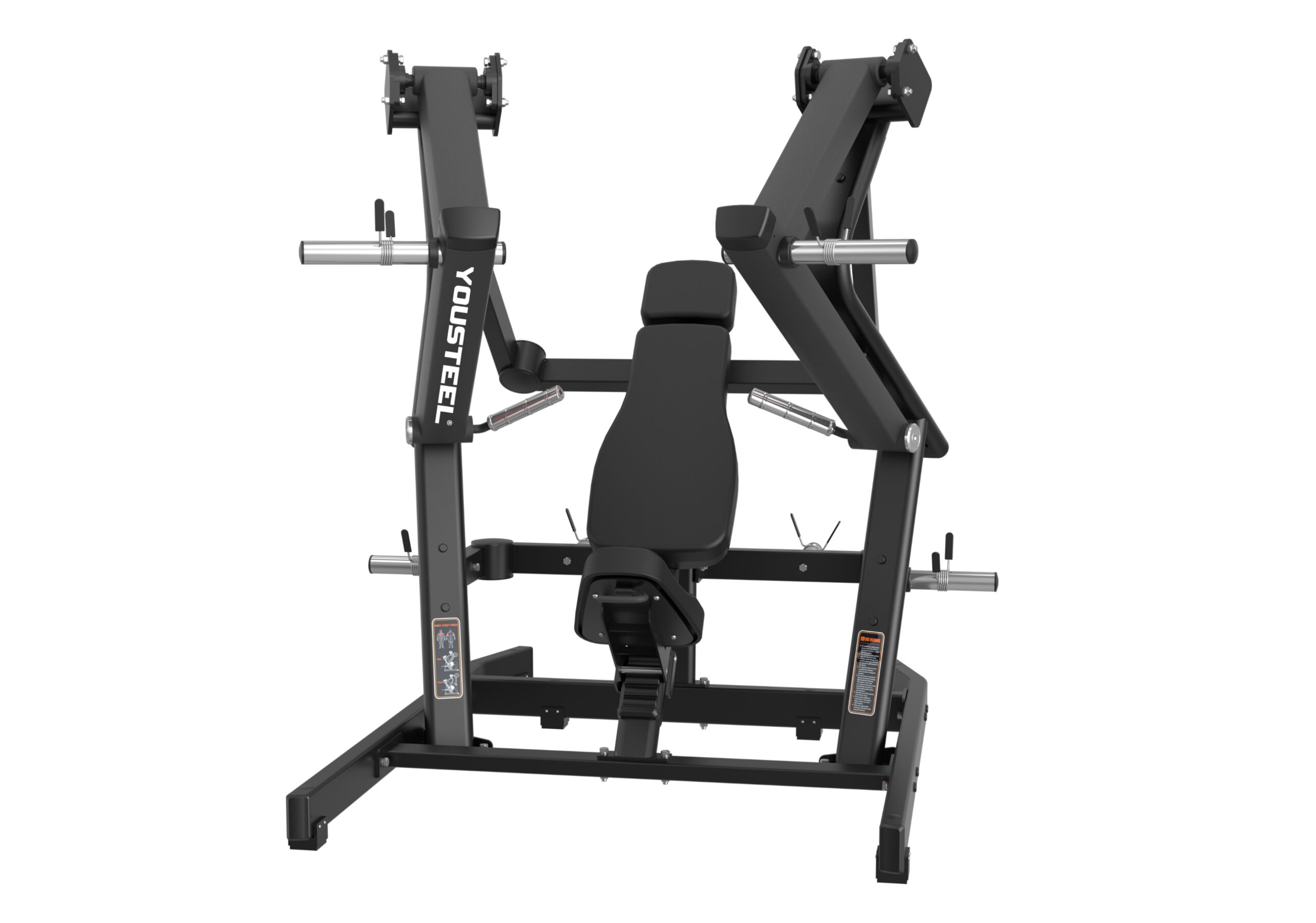 Широкий жим от груди — это профессиональный тренажер нагружаемый дисками. Отлично подойдет для развития нижних грудных мышц, а также поможет проработать передние дельтовидные и трицепс. Независимое движение рычагов моделирует естественную траекторию движения и позволяет работать как двумя, так и одной рукой. Рукояти из алюминия имеют насечку для надежного хвата. Каркас выполнен из толстостенного стального профиля 3мм и сварен на современном лазерном оборудовании. Удобное сиденье из пенополиуретана обтянуто искусственной кожей и имеет трещоточный механизм для быстрой регулировки по высоте. Четыре хромированных кронштейна для хранения дисков под посадочный диаметр 50мм. Втулки кронштейнов для дисков расположены под небольшим углом, для предотвращения скатывания дисков во время работы и хранения. Резиновые амортизаторы на рычагах предотвращают повреждение покрытия при резком опускании рычагов и смягчают конечную точку выполнения упражнения. Максимальная весовая нагрузка до 300кг.
