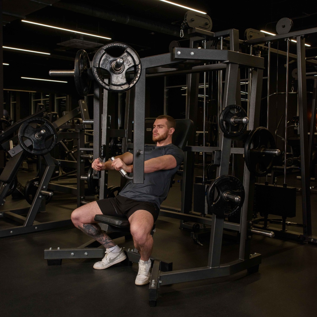 Профессиональный тренажер для коммерческого использования SM2014 Независимый жим от груди широким хватом предназначен для тренировки больших грудных мышц.