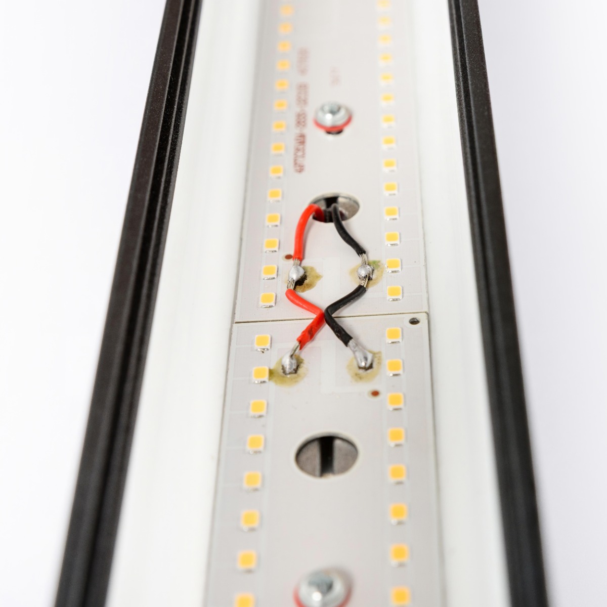 Источник света: светодиодная лента серии 2835R (размер диодов 2,8×3,5 мм). Плотность размещения: 12 диодов в каждом ряду (24 диода в сегменте). Метр светильника состоит из 10 сегментов – плотность размещения 240 светодиодов на метр.