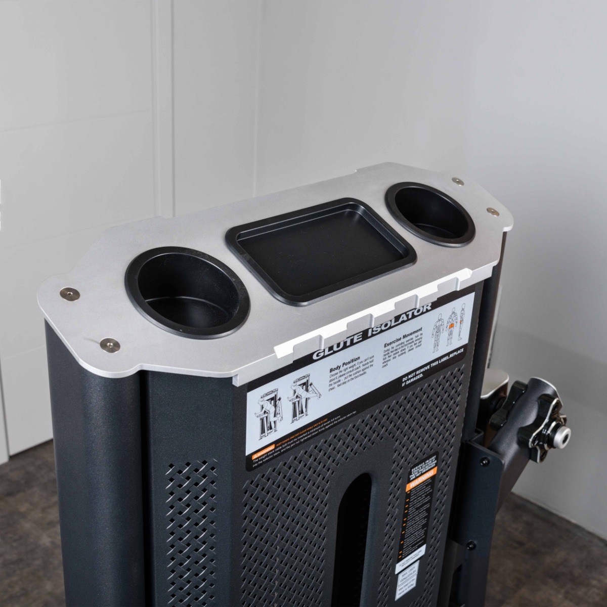 Верхняя часть грузоблока закрыта анодированным алюминиевым коробом с углублениями круглой и прямоугольной формы для хранения личных вещей.