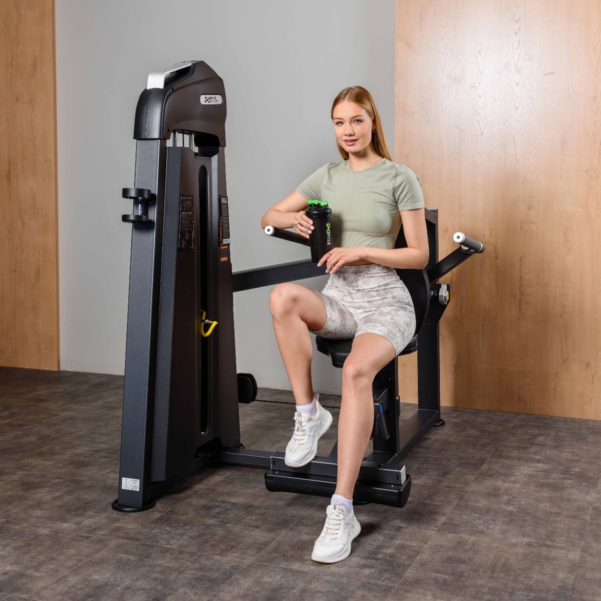 Спинка сиденья с наклоном вперед гарантирует безопасное положение пользователя на тренажере.
