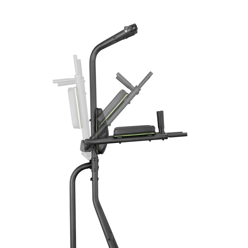 Данная спортивная стойка – это многофункциональная мобильная установка, которая совмещает в себе брусья и турник для подтягиваний с широким или узким хватом. На стойке также можно выполнять упражнения на пресс, для этого она оснащена удобными подлокотниками и спинкой.