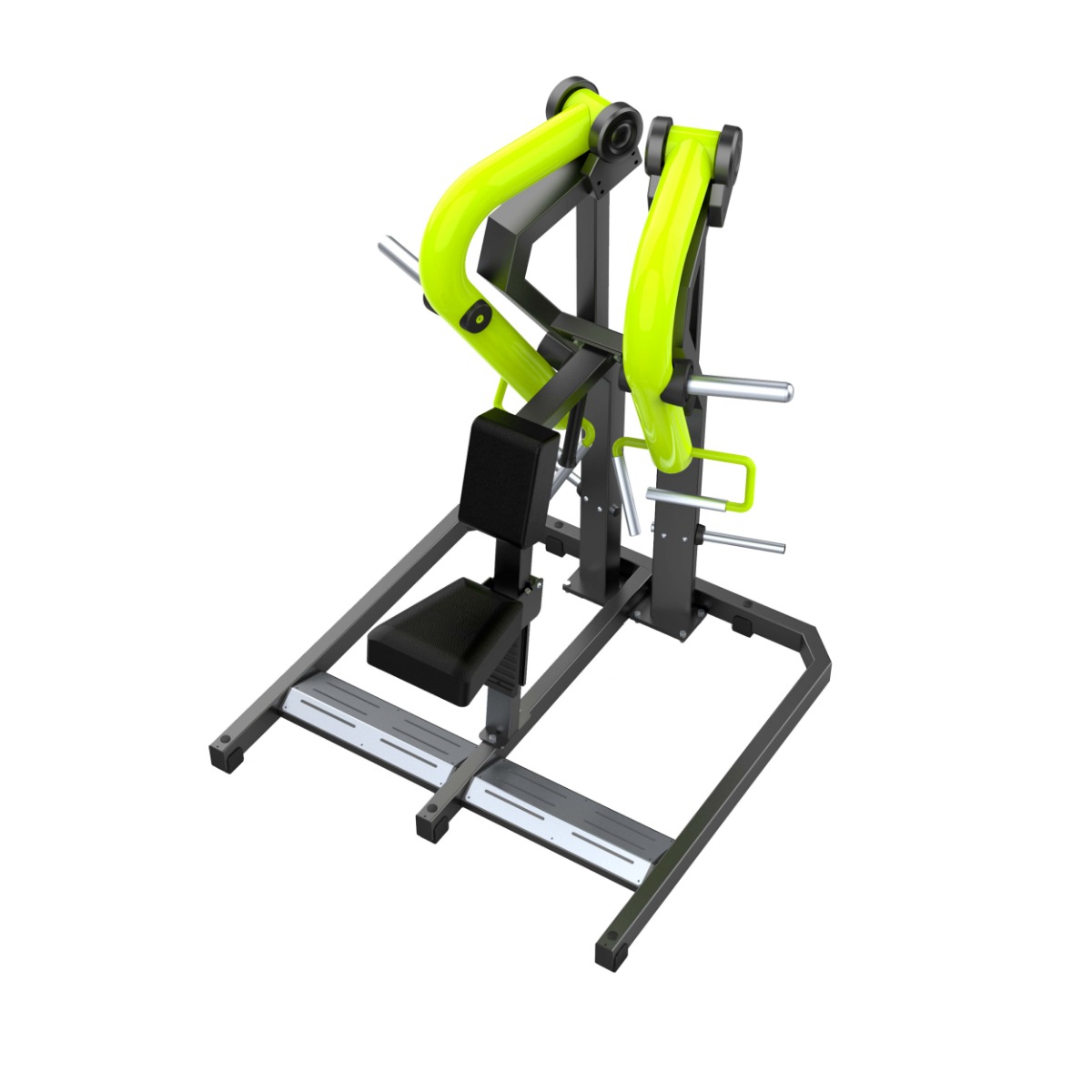 Подвижные рычаги выполнены из изогнутого круглого стального профиля без сварных соединений в рабочей зоне, что повышает прочность конструкции и придаёт тренажёру современный и выразительный внешний вид.